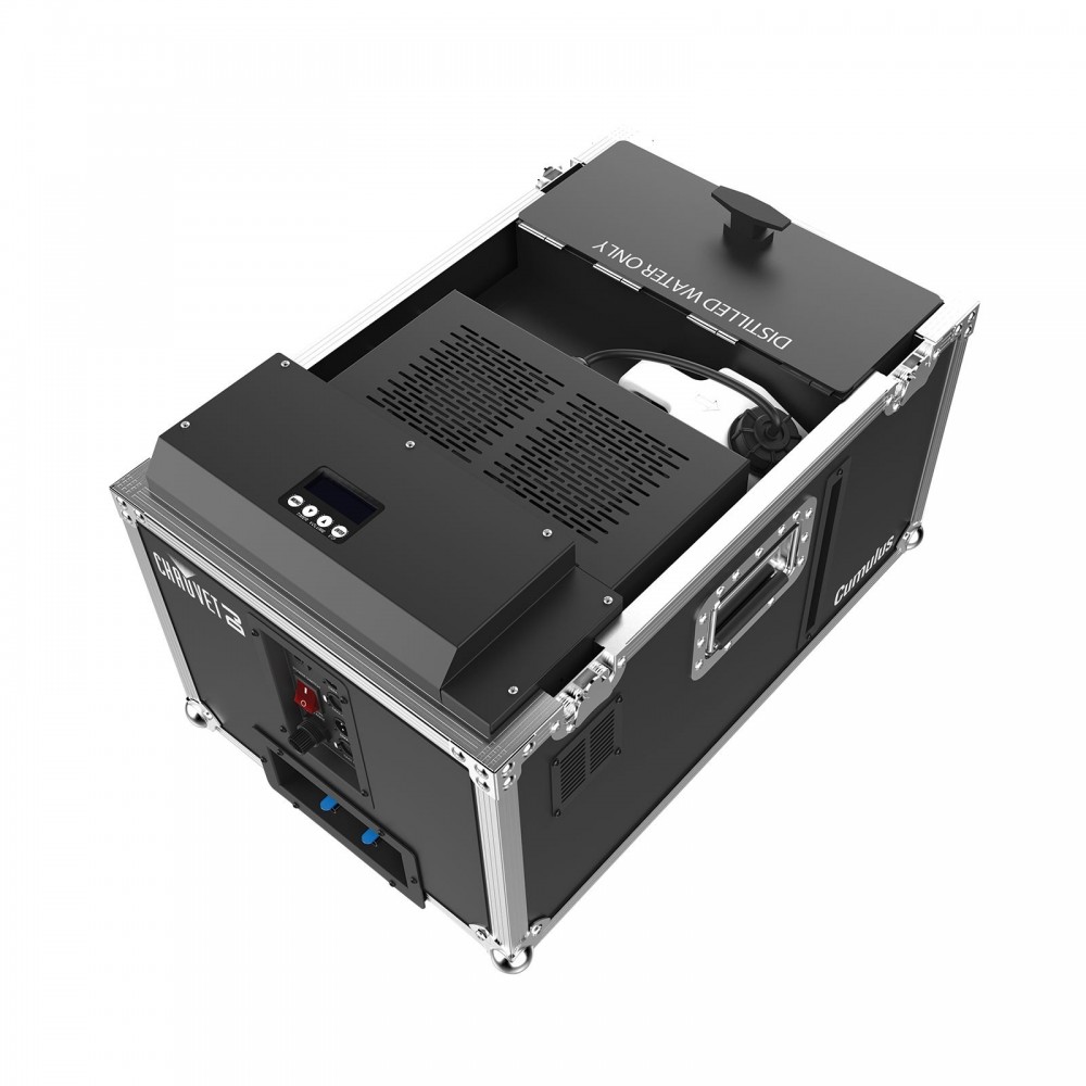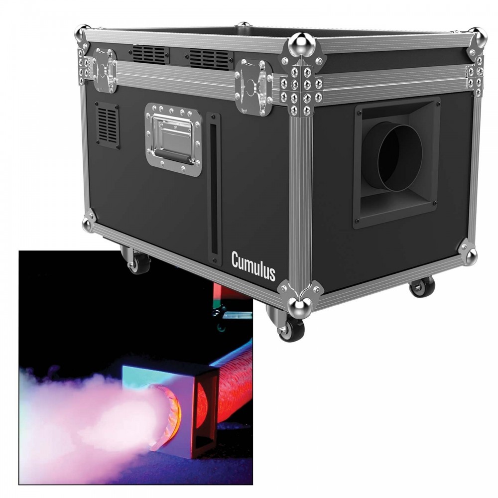 Cumulus to w pełni profesjonalna, gotowa do użycia maszyna do wytwarzania ciężkiego dymu bez potrzeby wykorzystania suchego lodu, która tworzy gęste chmury mgły, które przylegają do podłogi. Specjalnie opracowane urządzenie zamienia destylowaną wodę w cienką mgiełkę. Szybki czas nagrzewania urządzenia pozwala na gotowość do pracy i mgłę na żądanie. Wytrzymała obudowa typu case sprawia, że transport jest łatwy, a kółka blokujące zapobiegają przypadkowemu przemieszczaniu się urządzenia.