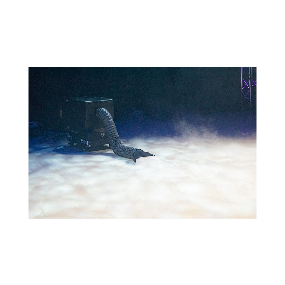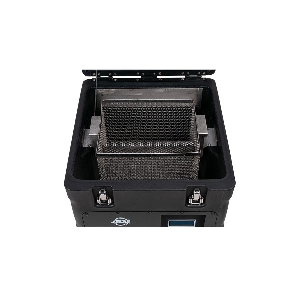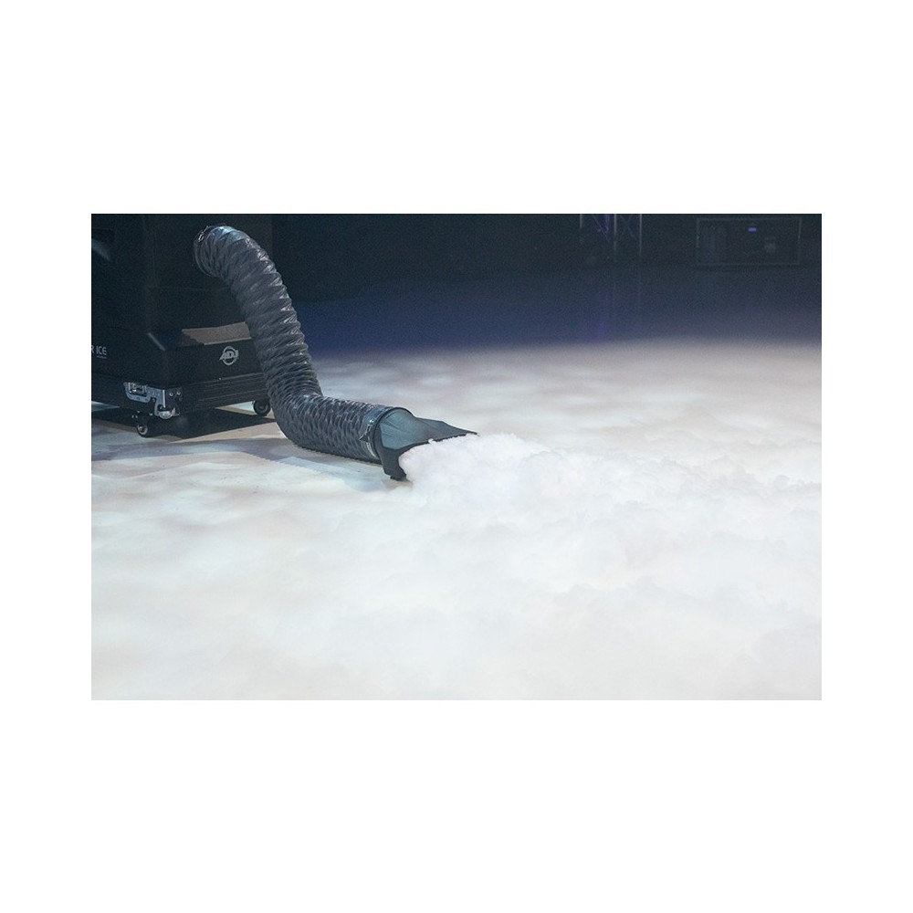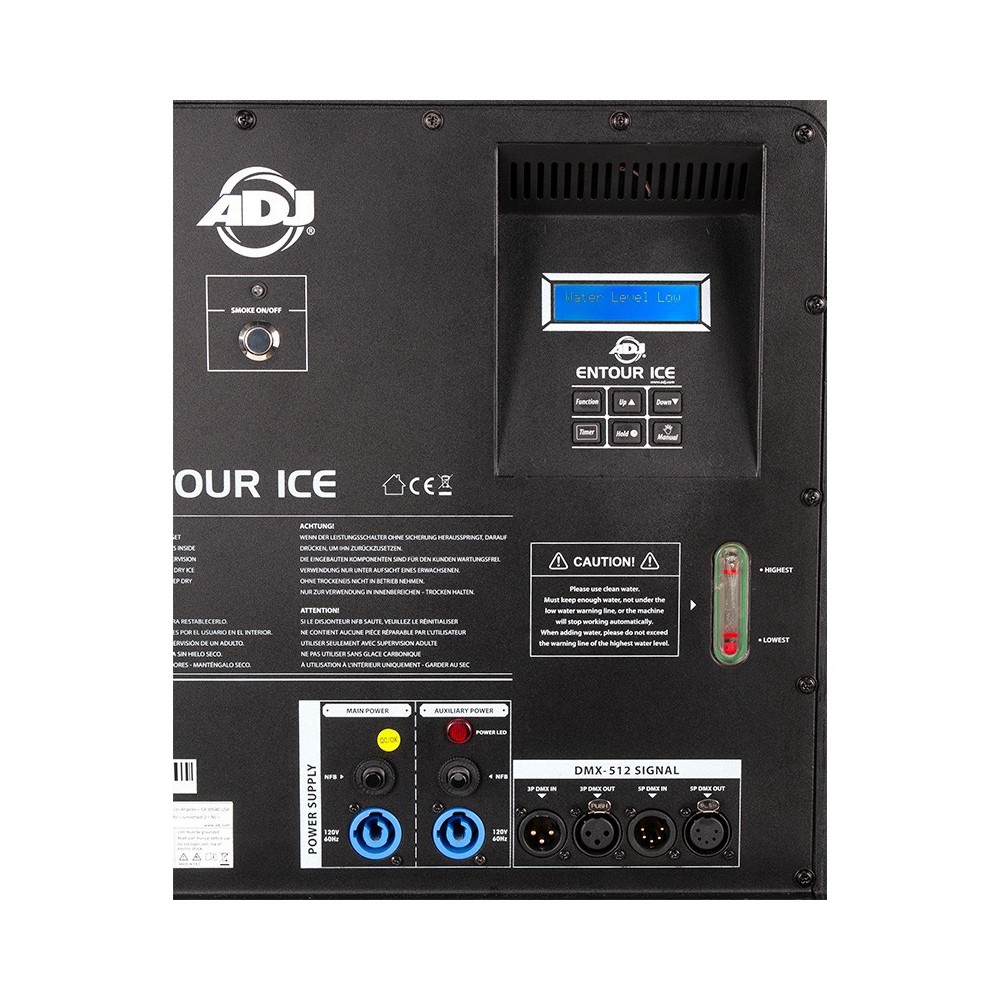 ADJ Entour Ice jest maszyną do ciężkiego dymu, która tworzy gęstą chmurę utrzymującą się blisko podłogi. Maszyna działająca z suchym lodem. W komplecie z kejsem na kołach. Kontrola urządzenia za pomocą systemu DMX oraz inne dostępne funkcje z pozycji menu pokładowego