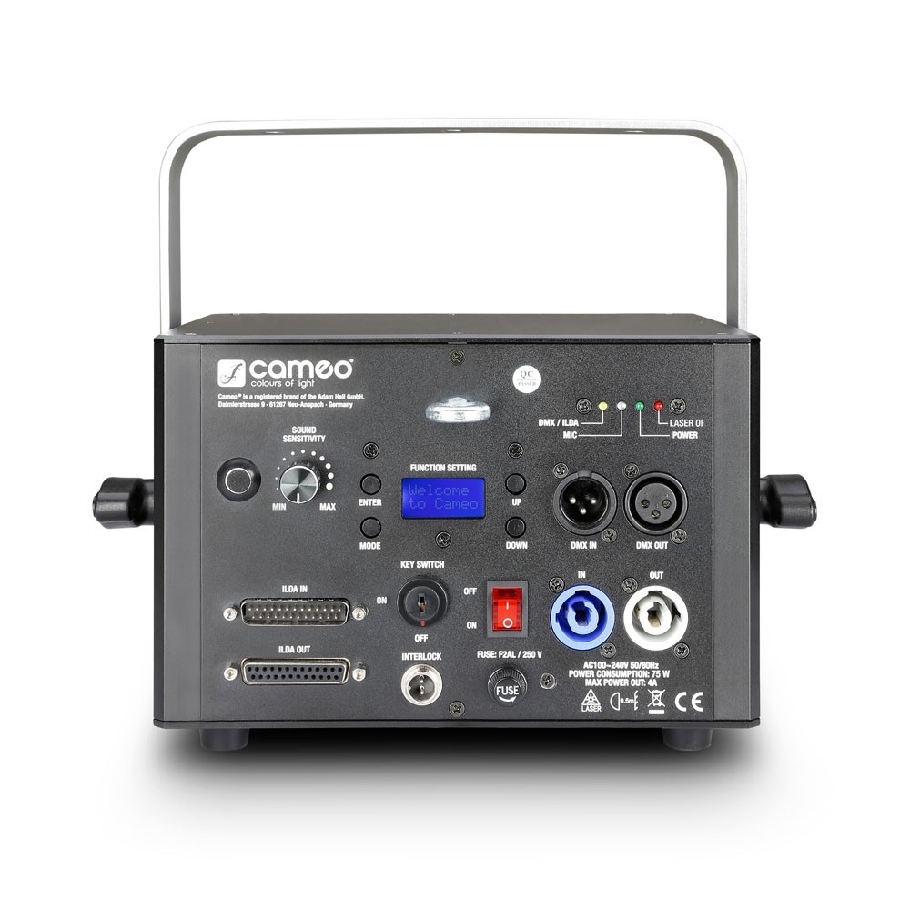 Urządzenie LUKE 1000 RGB charakteryzuje się wysoką mocą wynoszącą 1000 mW oraz zostało wyposażone w lasery diodowe i DPSS wytwarzające kolor czerwony, zielony i niebieski. Średnica wiązki wynosi 3 mm, a ekstremalnie niska rozbieżność 2 mrad. Dioda cz erwona emitująca światło o długości fali 638 nm zapewnia znacznie lepszą widoczność niż konwencjonalna dioda 650 nm i to dzięki niej urządzenie LUKE 1000 RGB stanowi idealny wybór dla osób chcących organizować profesjonalne pokazy laserowe. Luke – seria profesjonalnych laserów do pokazów laserowych, których dwuczęściowa konstrukcja, polegająca na oddzieleniu zasilacza i wentylatora od komponentów optycznych, zapewnia optymalną wydajność. Urządzenia wyposażono w system Galvos zapewniając y wysoką szybkość skanowania na poziomie 30 Kpps przy 8° ILDA, 60-stopniowy zakres skanowania oraz 128 ustawień predefiniowanych, co umożliwia uzyskanie efektownych projekcji grafiki o krystalicznie czystych i ostrych jak brzytwa wiązkach. Lasery ser ii Luke posiadają interfejsy ILDA wyposażone w 25-stykowe złącza D-Sub do podłączenia komputera odpowiedzialnego za sterowanie, 3-stykowe wejścia i wyjścia do sterowania DMX w trybie 4/11-kanałowym oraz mikrofon o regulowanej czułości służący do ster owania dźwiękiem. Ponadto lasery mogą pracować w trybach Master, Slave i Standalone. Wytrzymała i lekka obudowa wykonana z aluminium została wyposażona w włącznik/wyłącznik kluczykowy zabezpieczający przed użyciem urządzenia przez osoby nieupoważnion e, jasny wyświetlacz z czterema przyciskami do obsługi ręcznej, a także złącza zasilania sieciowego Neutrik powerCON. Cichy wentylator zapewnia niskie temperatury pracy, a w celu ochrony widzów w laserach serii Luke zastosowany został system bezpiecz eństwa Scan Fail. Wskazówka: lasery Luke i modele serii Ioda posiadają identyczne ustawienia predefiniowane, a ponadto są zgodne z trybami pracy Master/Slave. Dzięki przełączalnej inwersji układ Master/Slave jest w stanie zapewnić jeszcze bardziej imponujące pokazy l aserowe.