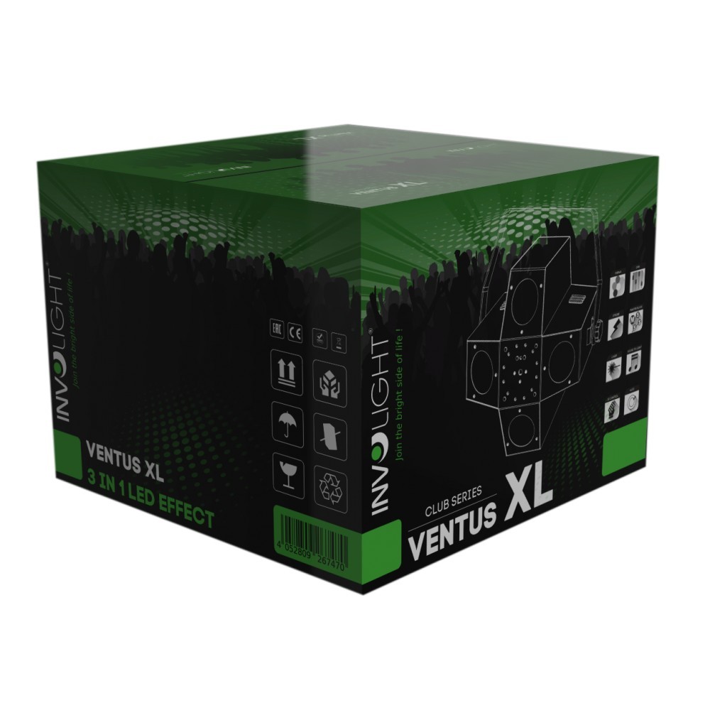 INVOLIGHT VENTUS XL może pracować w trybie automatycznym, jak również w reakcji na dźwięk. Do wyboru mamy 7 różnych programów wbudowanych w urządzeniu. Wszystkie programy mogą być dostosowane do pożądanej prędkości działania. Dzięki możliwości pracy w trybie master / slave, kilka urządzeń może pracować synchronicznie, budując razem imponujące lightshows!