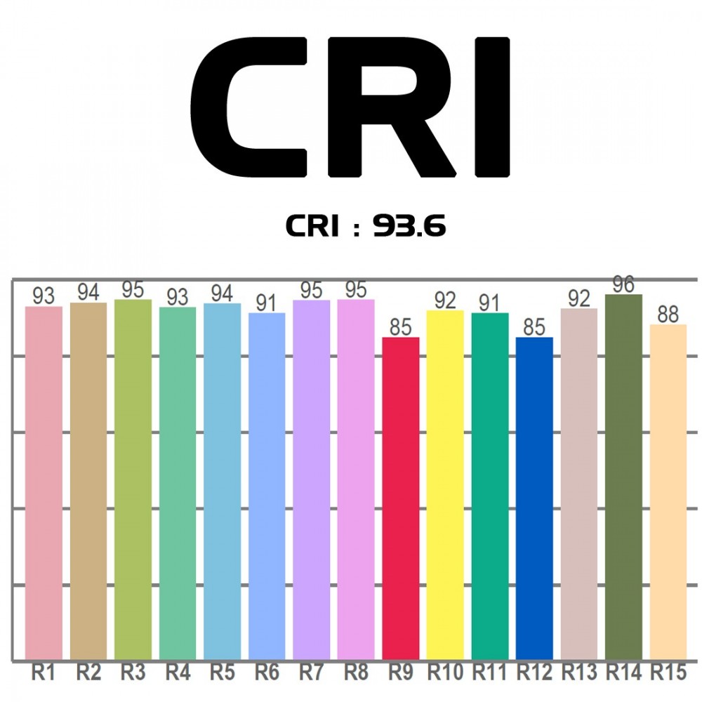 - CRI >93, CRI R9 > 84