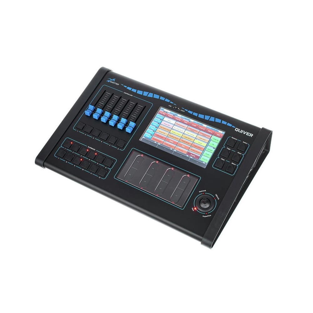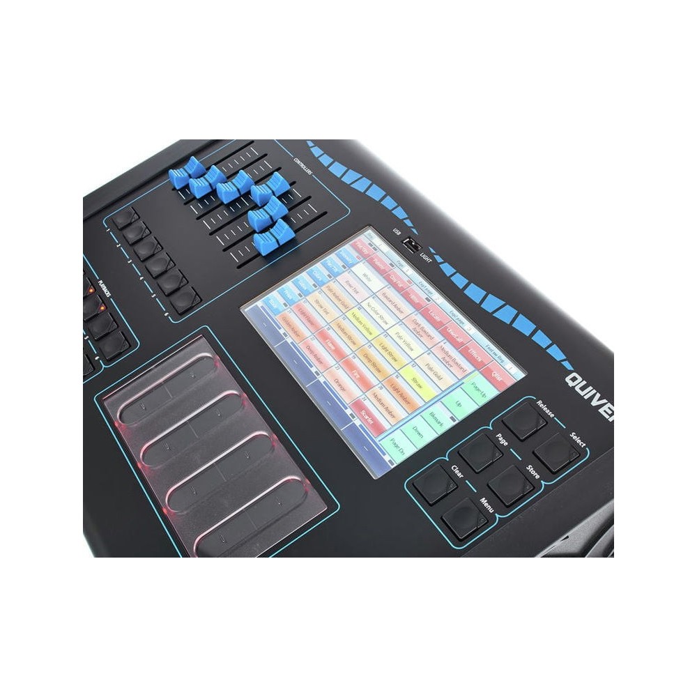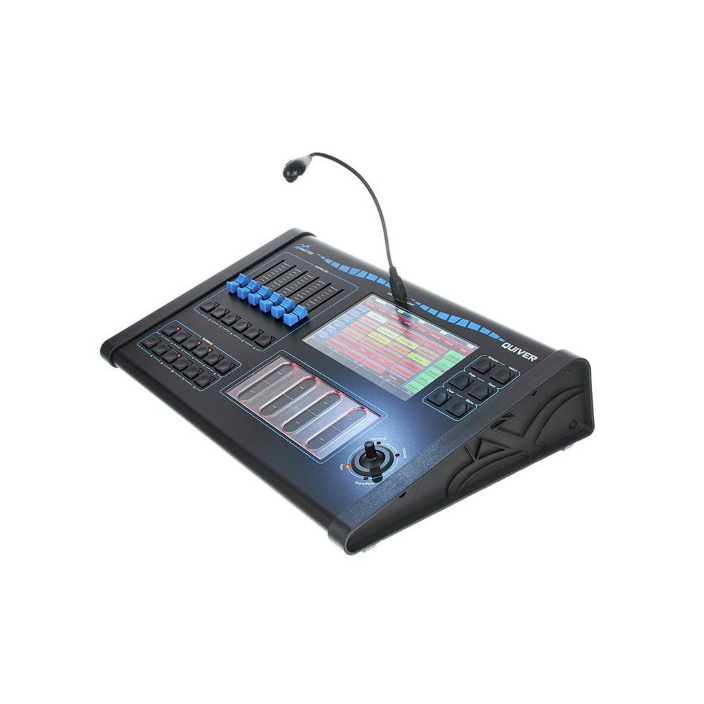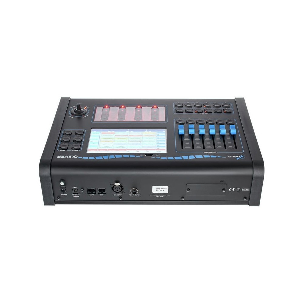 Quiver oferuje ponadto wyjście DMX Out pracujące w standardzie 512 kanałów, a także złącza EXP1, EXP2 dla extenderów, które zapewnią dodatkowe kanały (konsoleta + dwa extendery dają nawet 1536 kanałów).