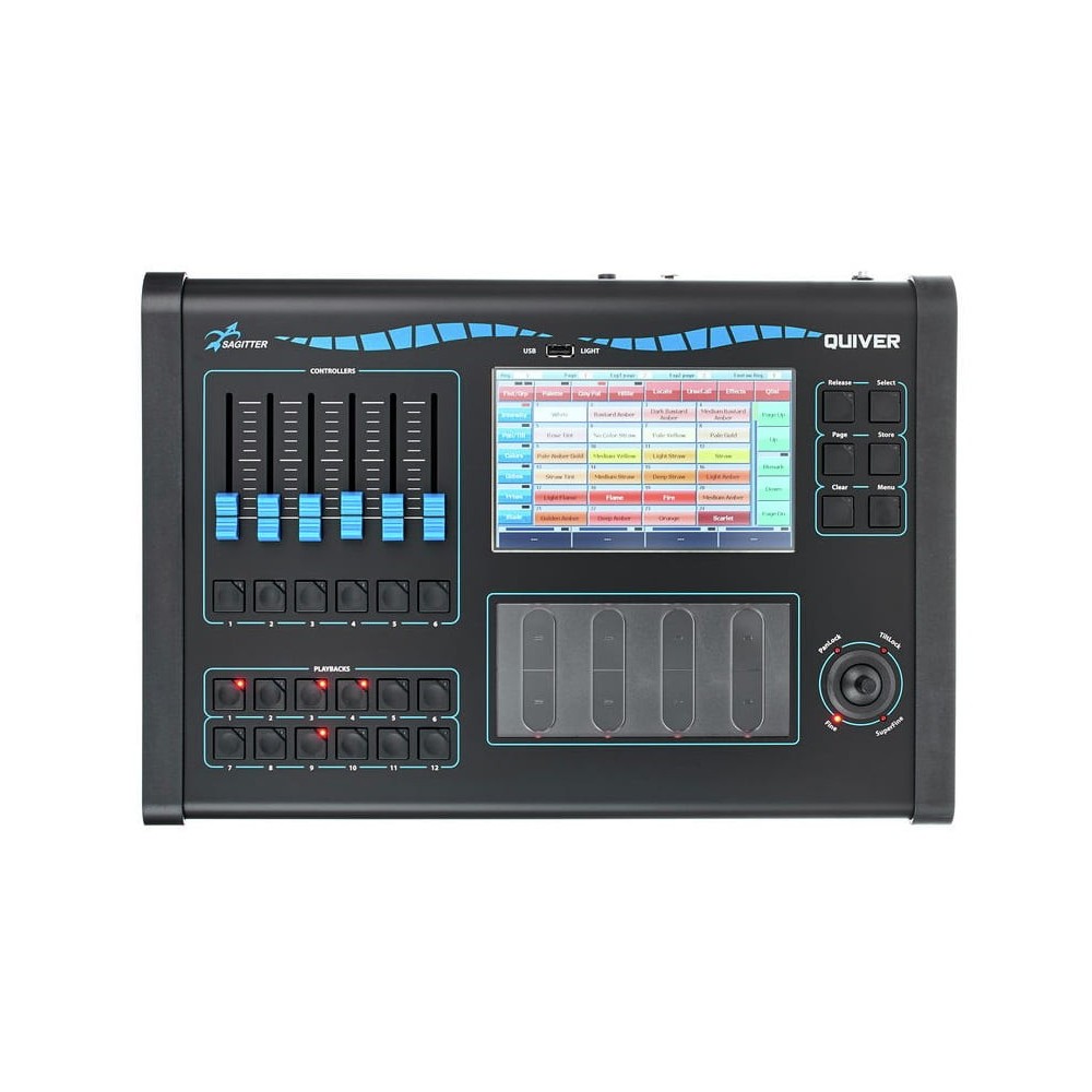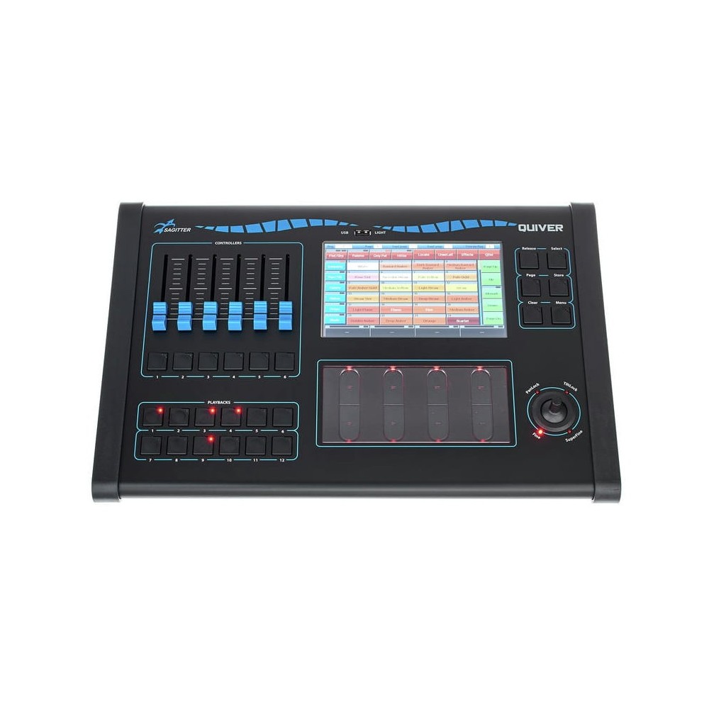 Sagitter Quiver to konsoleta oświetleniowa pracująca w trybie stand alone, która może być dodatkowo rozbudowana o dwa dedykowane extendery Quiver X, oferujące dodatkową ilość enkoderów służących do programowania. Jedną z największych zalet konsolety Quiver jest pełna konfigurowalność. Konsoleta oferuje m.in.:
