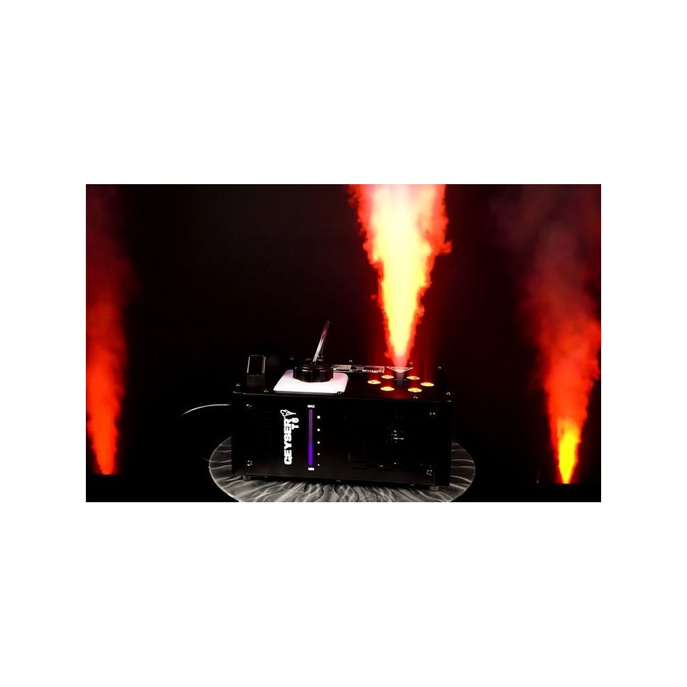 Geyser T6 jest idealny do zastosowań mobilnych. Posiada możliwość wyzwalania pracy za pomocą pilota bezprzewodowego, sterownika na kablu oraz przycisku bezpośrednio na maszynie!