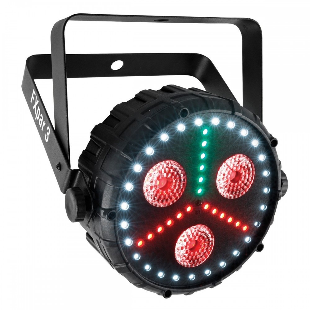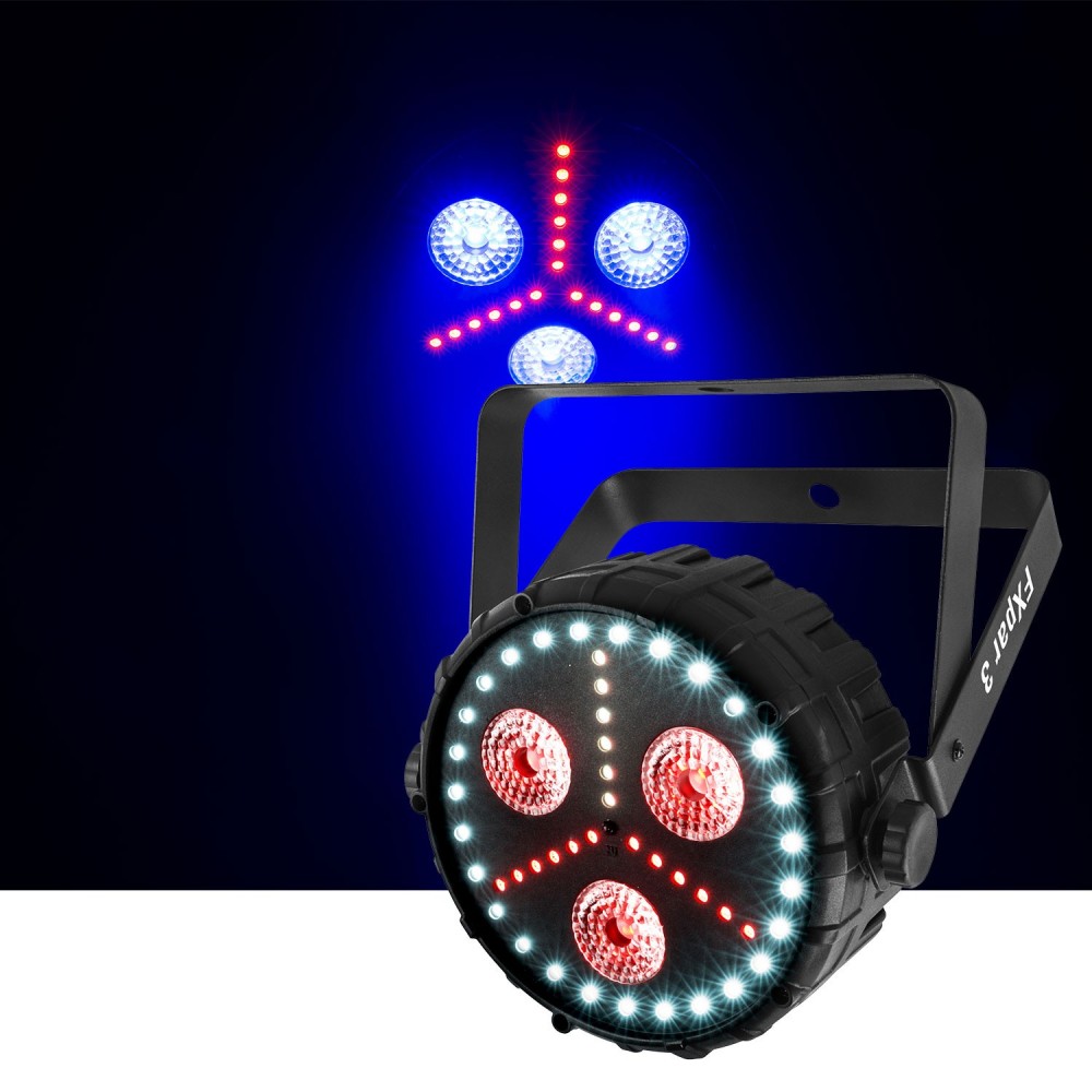 FXpar 3 to kompaktowy efekt z wieloma rozwiązaniami świetlnymi w jednym urządzeniu. Zawiera trzy centralne diody LED 8W Quad-color (RGB + UV), diody LED RGB SMD i efekt strobo oparty na SMD. Oddzielna kontrola tych funkcji sprawia, że tworzenie zapierających dech w piersiach efektów swojego light show jest łatwe, a zarazem nowatorskie.
