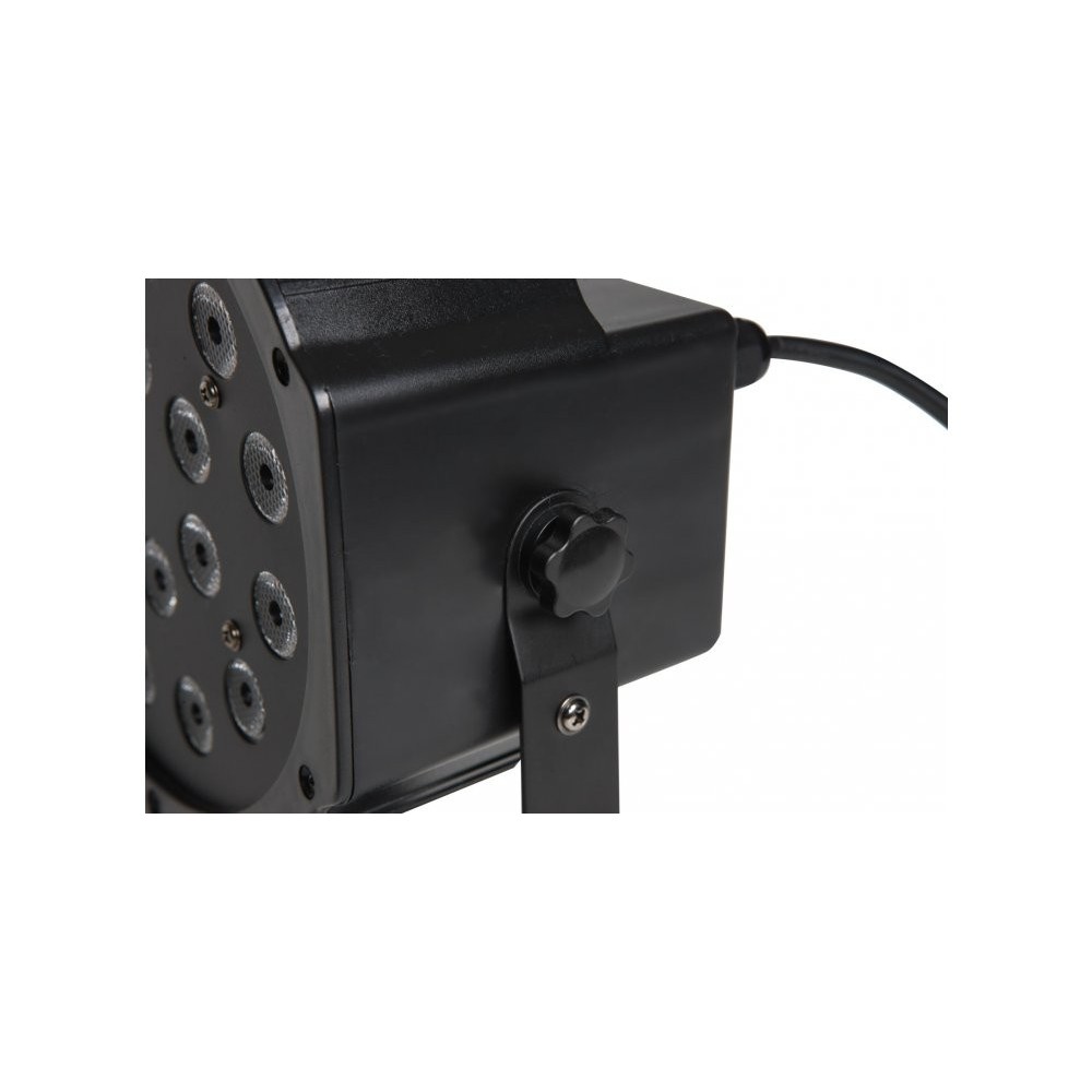 Kompaktowa lampa typu LED PAR wyposażona 18 diod LED o mocy 1W każda. Oferuje tym samym optymalną jasność świecenia i wyjątkowe mocne nasycenie kolorów. Urządzenie posiada gotowe programy pracy, co znacznie skraca konfigurację w dowolnym typie instalacji. Jest to poręczna i lekka lampa o wysokiej wartości strumienia świetlnego, która może być sterowana w standardzie DMX.
