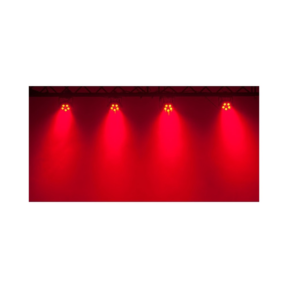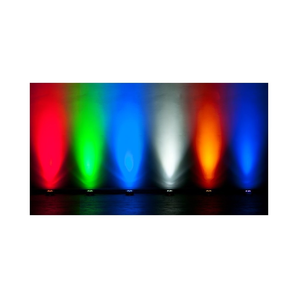 • Vibrant slim flat black Par with 5 x 6-Watt, 6-IN-1 Hex (RGBWA+UV) LEDs