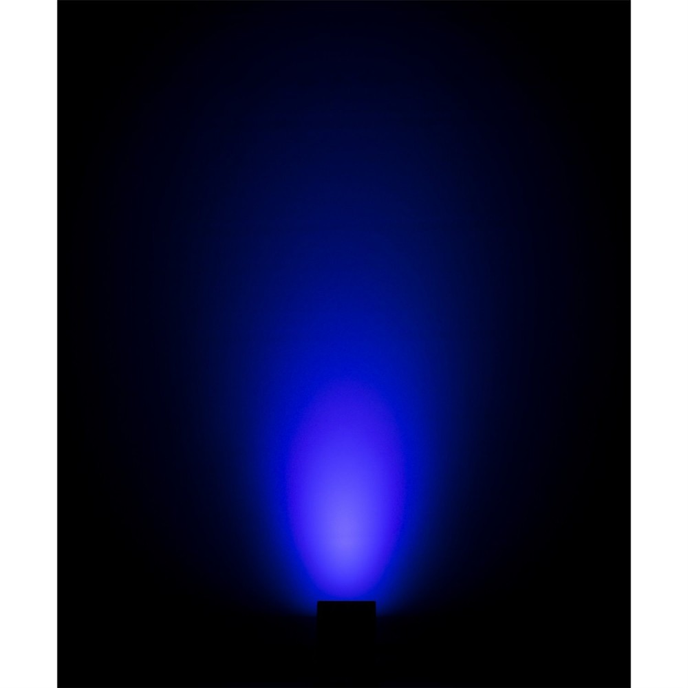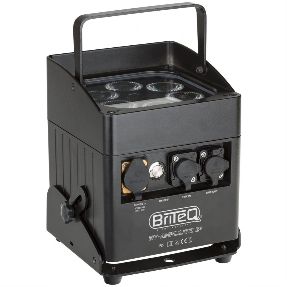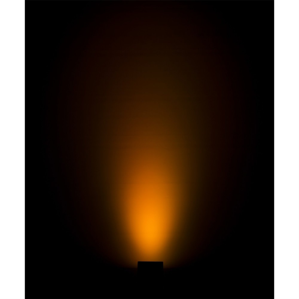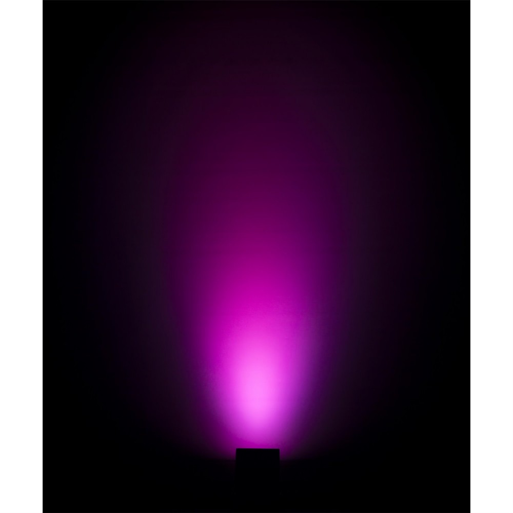 Zasilany bateryjnie zewnętrzny reflektor LED, oparty na 6ciu 10-watowych diodach RGBWA, pozwalających uniknąć niechcianych cieni.