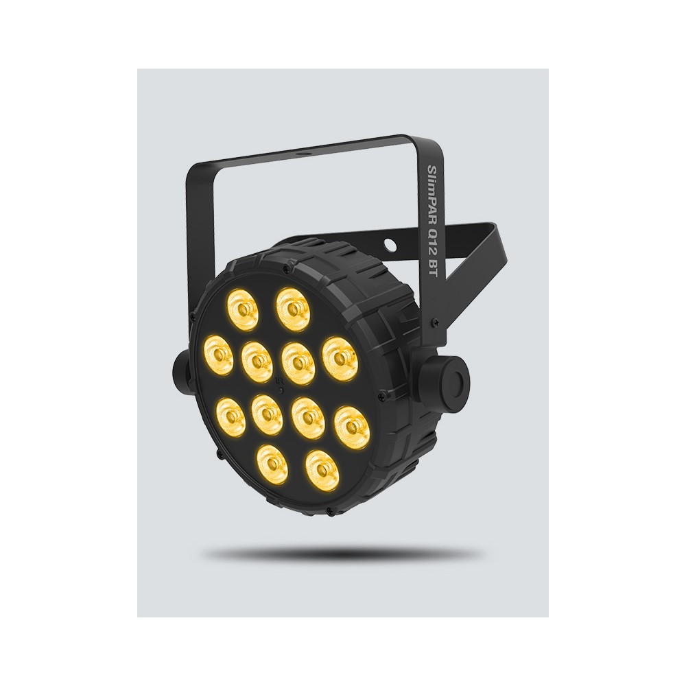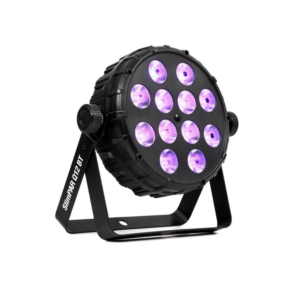 SlimPAR Q12 BT to kompaktowy reflektor par z wbudowaną technologią bezprzewodową Bluetooth®, która pozwala kontrolować światło z dowolnego smartfona lub tabletu bez potrzeby stosowania dodatkowego sprzętu.