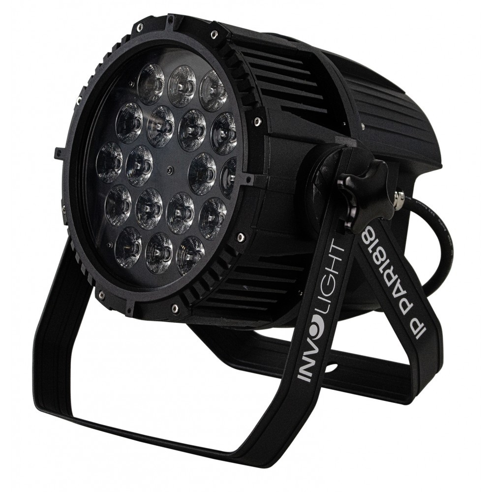 Niezwykle wydajny "IP PAR1818" o mocy 22 500 Lux @ 1m. Reflektor z 18 diodami LED 12W RGBWA 5-w-1, które wytwarzają niezwykle jasne światło o kącie