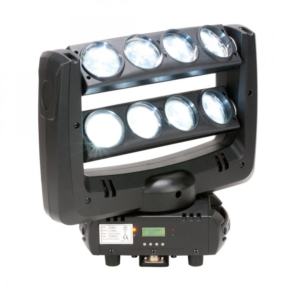 Crazy 8 oferuje 3 tryby DMX, 4-przyciskowy wyświetlacz LED ułatwiający zmianę ustawień. Głowa może być sterowana za pomocą własnych zainstalowanych programów, DMX lub poprzez słynną serię sterowników UC3, łatwe w obsłudze. Crazy 8 perfekcyjnie sprawdzi się w klubach, dyskotekach lub u artystów mobilnych.