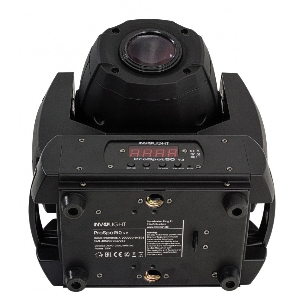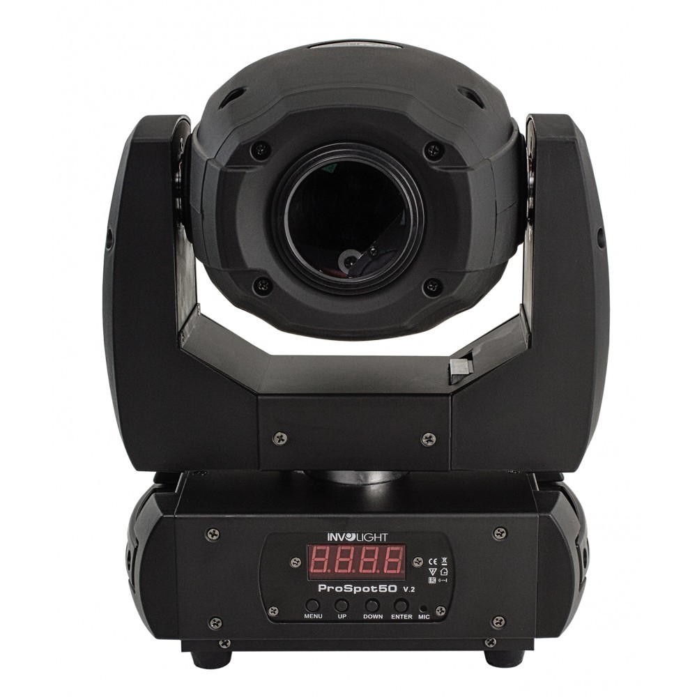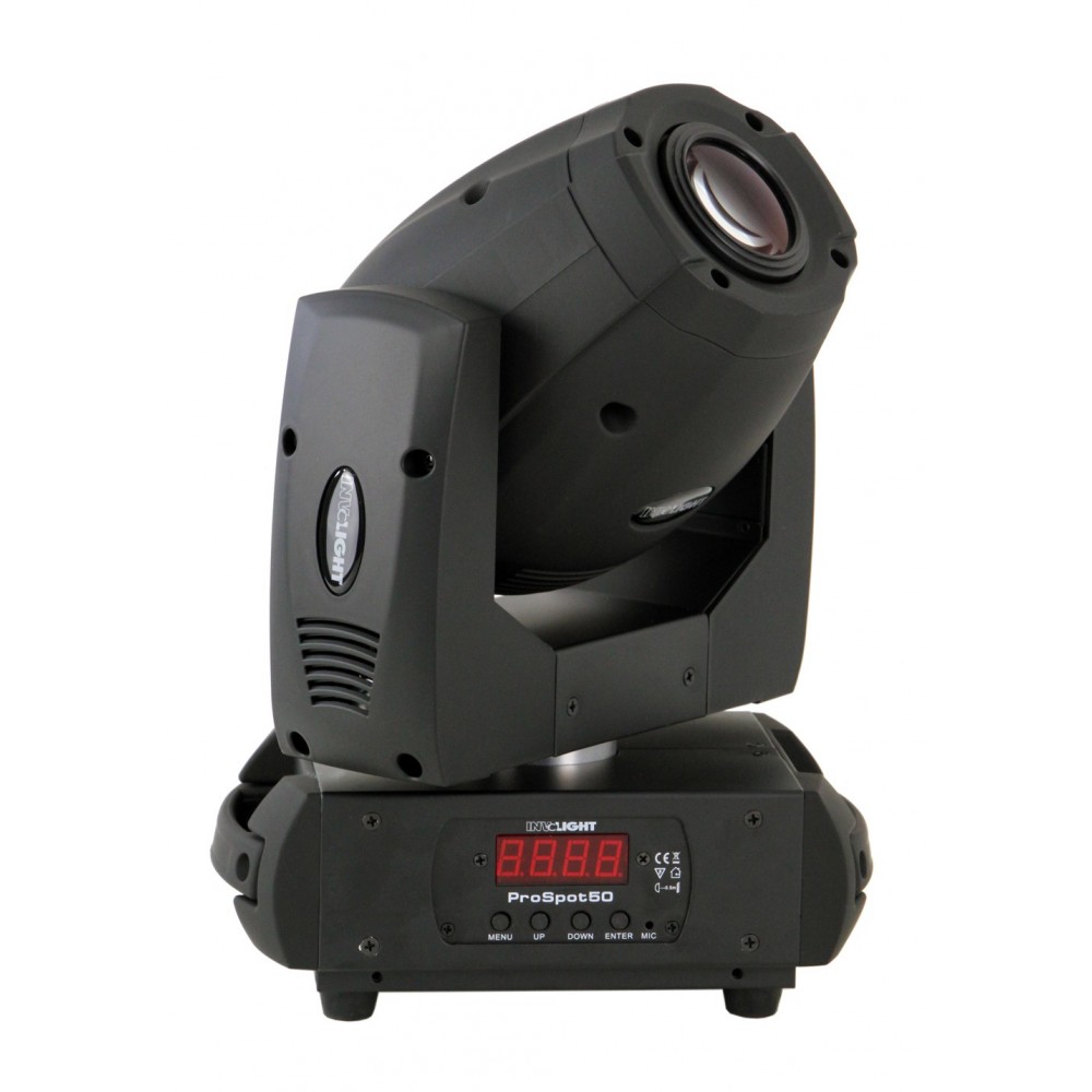 LED PROSpot50 ma 7 kolorów dichronicznych + biały, 6 ROTACYJNYCH gobo + 1 otwarty, przełączany efekt Shake, efekt stroboskopowy z 0 - 20Hz oraz elektroniczny dimmer od 0 - 100%.