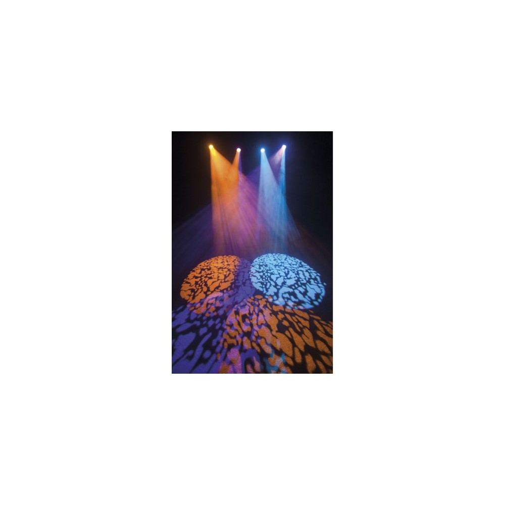 Gobos & Colors Gobo: 1 Glass & 6 metal gobos Gobo functions: Gobo-Flow effect, Gobo shake Rotation: Bi-directional Colors: 7 dichroic-filters + white Color functions: Rainbow-flow effect