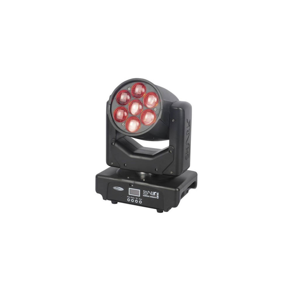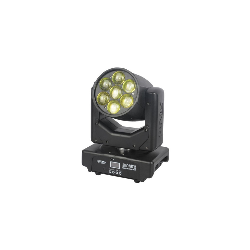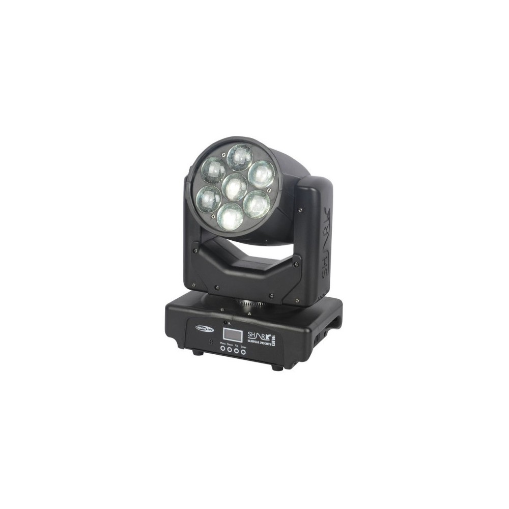 The Showtec Shark series is a series of compact size moving heads with excellent features and impressive outputs. Designed for mobile Dj's, musicians small pubs and bars. The Shark series will bring a professional level of intelligent lights with the ease of use available for both professional and non-professional users. All fixtures in the Shark range include a IR remote for plug and play control. Versatile feature macros and sound active built-in programs are available to create amazing shows without the need of complex programming. The complete Shark range is equipped with IFS-Technology which helps the user to control different Shark fixtures within one setup. It makes it possible to have synchronized movements, strobe rates and control speeds within the Shark range.