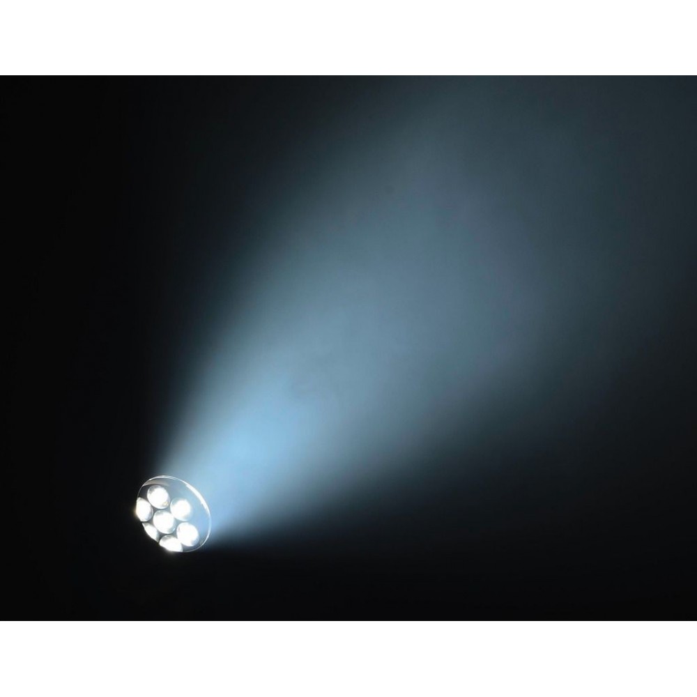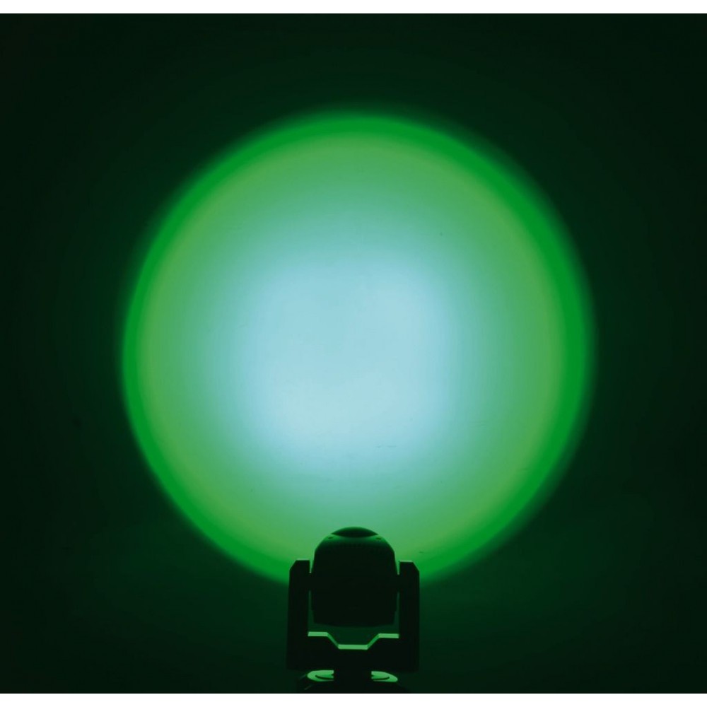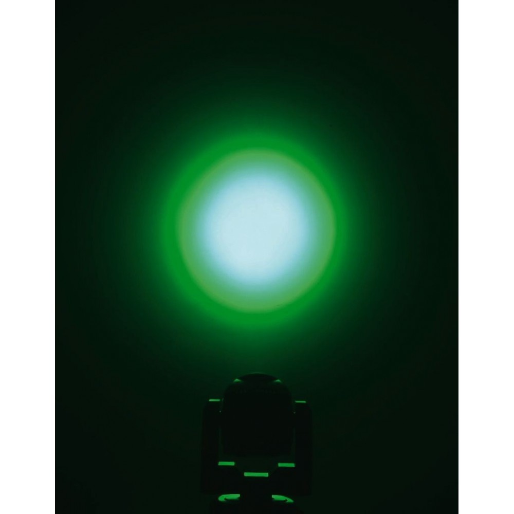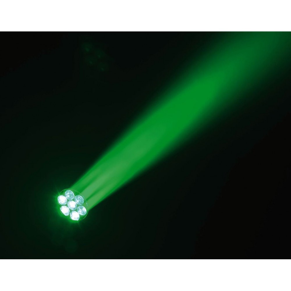 Kompaktowa ruchoma głowa diodowa z funkcją motor-zoom. 7 diod RGBW 4-w-1 o dużej jasności, 12W każda Zoom: 6-36°