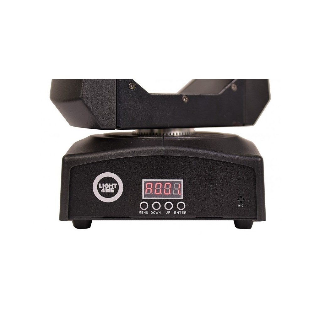 LIGHT4me Smart beam LED 60 dzięki swoim kompaktowym rozmiarom i małej wadze jest głowicą bardzo mobilną, która sprawdzi się na każdej małej imprezie, w pubie czy dyskotece oraz wszędzie tam, gdzie dekoracja światłem ma znaczenie. Dużym atutem głowicy jest także bardzo cicha praca. Ponadto urządzenie zostało wyposażone w efektowne programy świetlne działające w trybie automatycznym oraz Sound Mode. Głowica posiada także wyświetlacz LCD oraz menu obsługiwane za pomocą czterech przycisków. Aby w pełni wykorzystać możliwości głowic typu beam, sugerujemy zakup w większej ilości (4, 6, 8 szt.) oraz sterowanie nimi za pomocą sterownika DMX w wersji kompaktowej lub PC