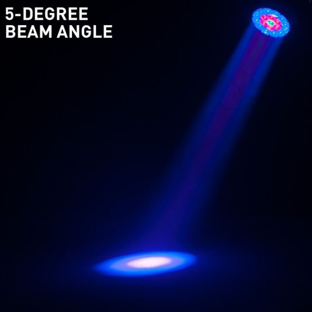 It features motorized zoom from 5 ~ 50-degrees, a 3-zone ring control with eye-popping color macros, 3 DMX channel modes, 6 dimming curve modes and a 4-button touch control panel with a large LED display.