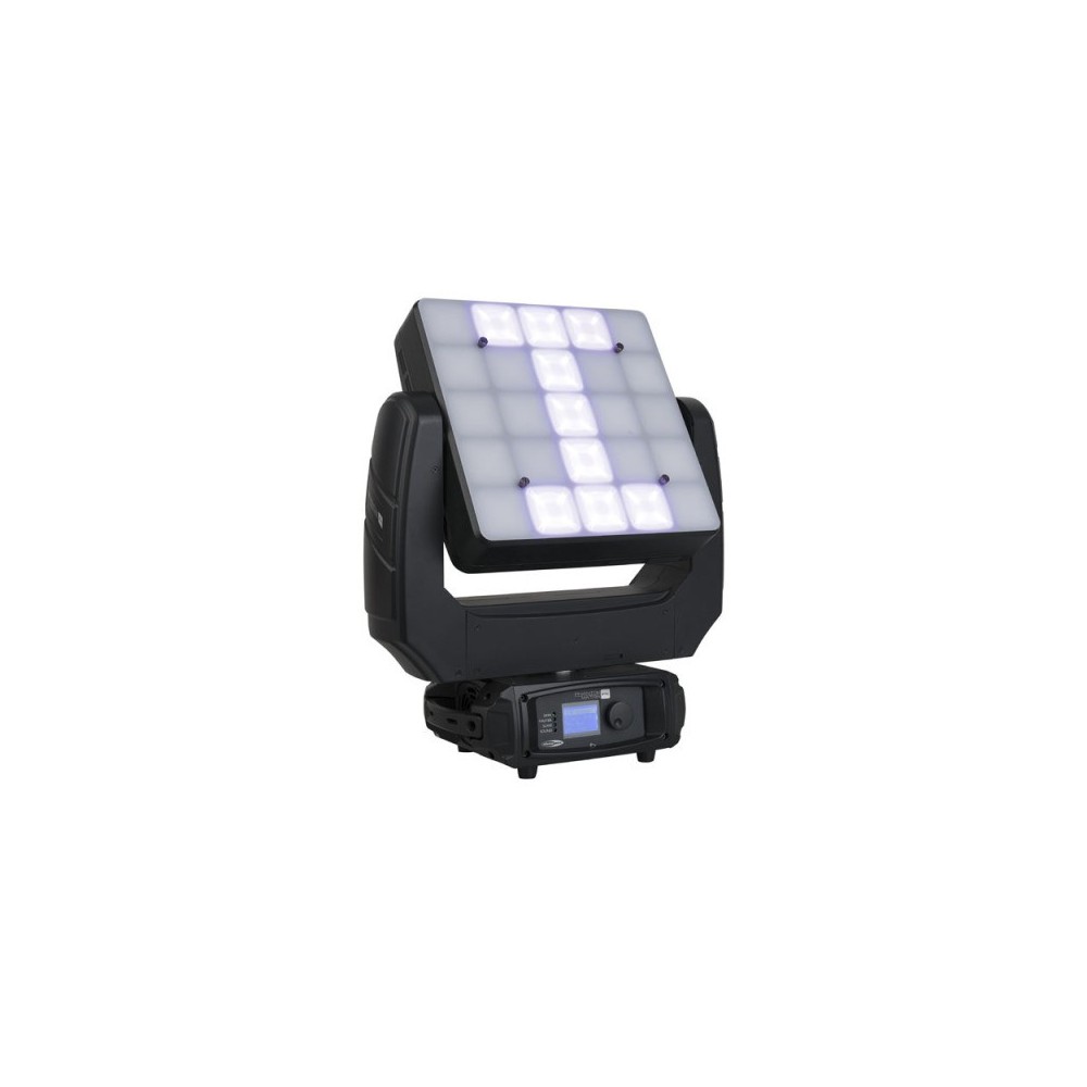 Showtec Phantom Matrix FX to panel 5x5 matrycy ruchomej z 25 elementami LED RGBW 4W i optyką 45 °.Obsługa za pomocą 10, 18 i 118 kanałów DMX dla początkujących i zaawansowanych użytkowników. We wszystkichtrubach ustawione kolory, programy kolorowe, wbudowane animacje, gobo i znaki są wybierane przez DMX. Posiada technologię IFS, która pomaga użytkownikowi połączyć inne urządzenia IFS z podobnymi funkcjami w celu zsynchronizowania. To ułatwia programowanie podobnych kolorów, programów, lampek i prędkości. Użyj dołączonego ekranu dyfuzora, aby utworzyć lepszy widok animacji i używać go jako ruchomego panelu wizualnego.