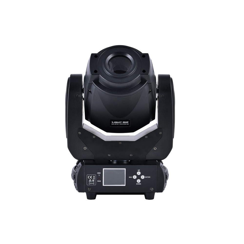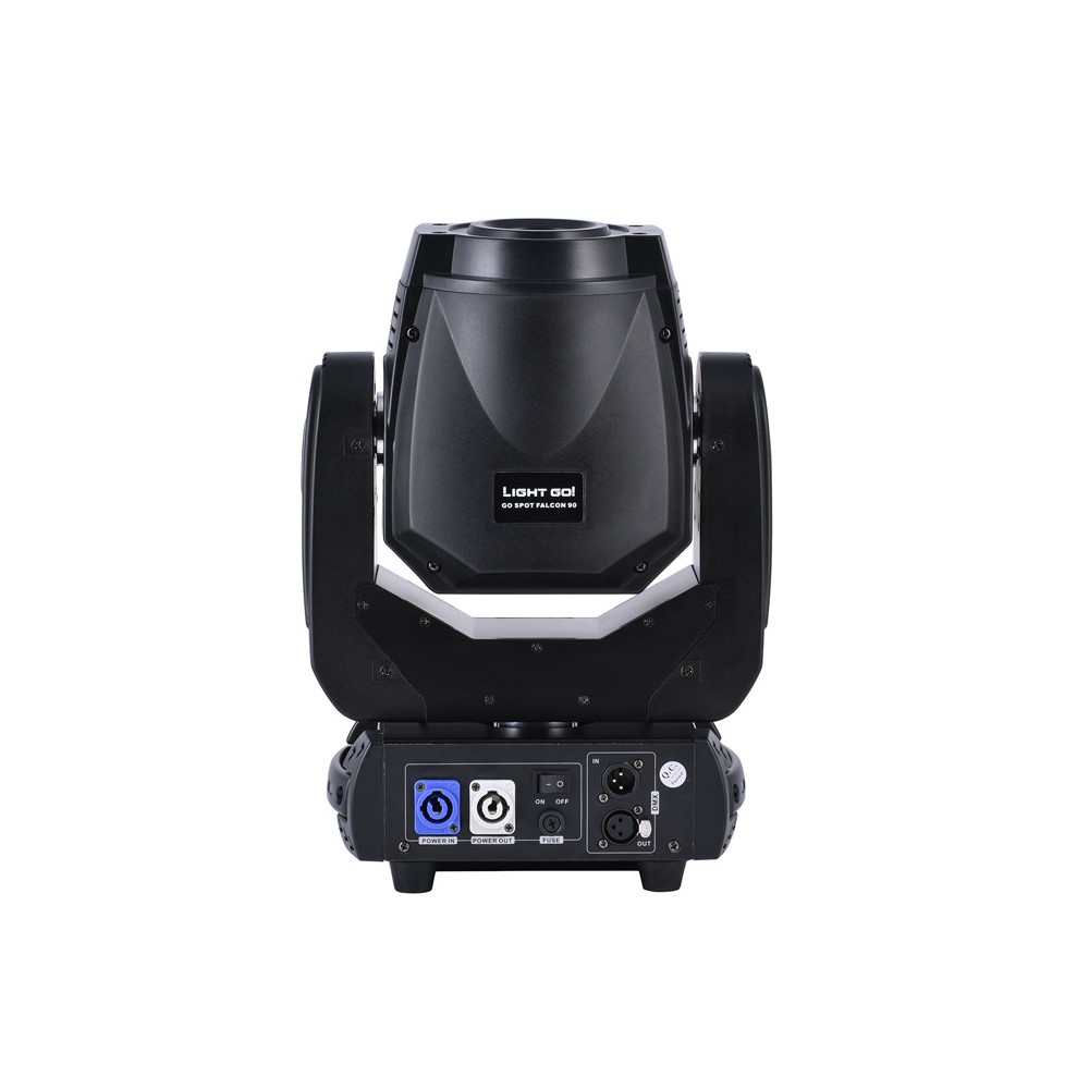 GO SPOT FALCON 90 posiada tarczę kolorów, 2 tarcze gobo, w tym rotogobo, bardzo płynny focus oraz 3-ścienną obrotową pryzmę.