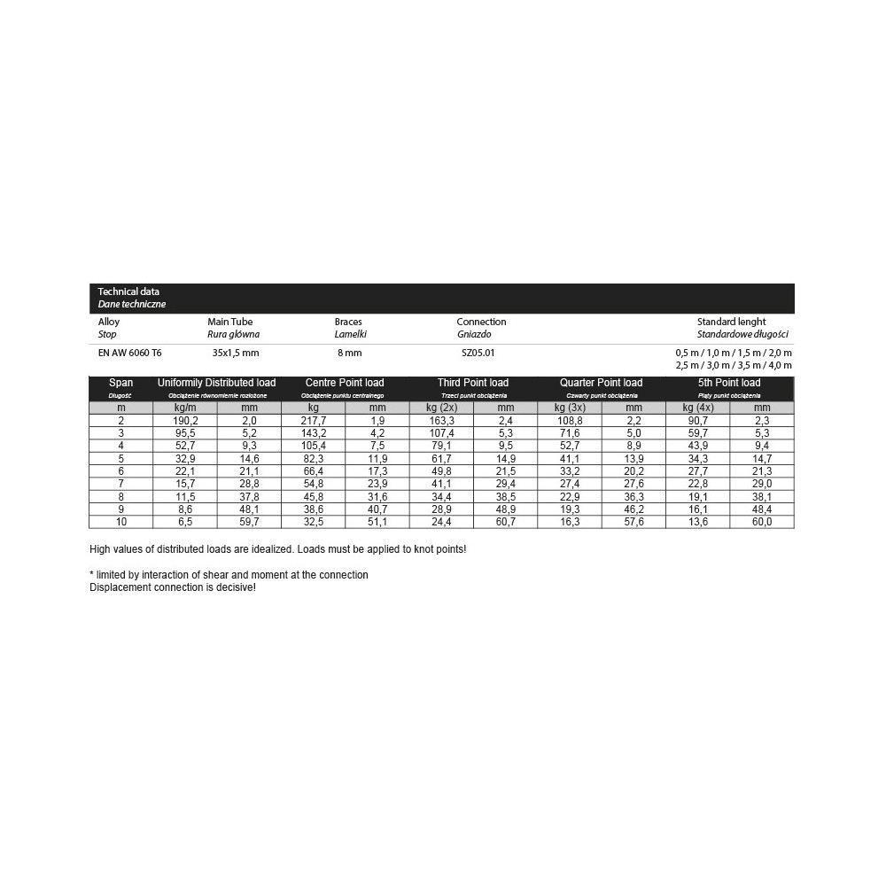 Kratownice ALUSTAGE dostępne są w trzech przekrojach: TRI oraz QUADRO. Łączenie ich odbywa się za pomocą tzw. "szybko-złączy".