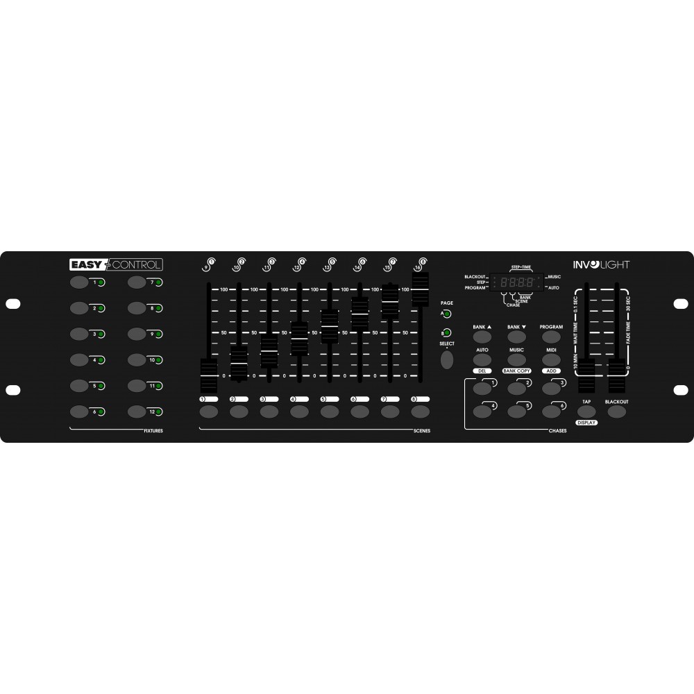 INVOLIGHT "EASYControl" jest oficjalnym następcą "DL-192"! Dzięki 192 kanałom sterowania dla 12 urządzeń z 16 kanałami DMX, oferuje wszystko, czego potrzebuje podstawowy sterownik urządzeń DMX. Szybko twórz proste sceny i zapisuj je bezpośrednio w urządzeniu. Możesz zapisać łącznie do 184 scen. Ponadto można zapisać 6 łańcuchów. Każda sekwencja ma 184 sceny. Istnieje również funkcja blackout, suwaki speed / fade pozwalają spowolnić lub przyspieszyć zapisane light show w czasie rzeczywistym. Ponadto w konsoli jest wbudowany mikrofon, aby odtwarzać zapisane sceny w rytm muzyki. Nowością jest również port MIDI do sterowania konsolą za pomocą klawiatury i portu USB do podłączenia np. lampy oświetlającej panel główny.