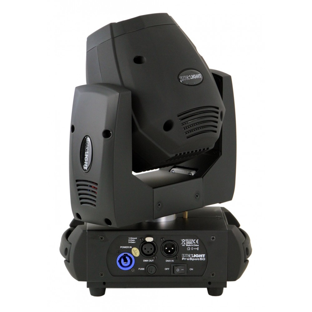LED PROSpot50 ma 7 kolorów dichronicznych + biały, 6 ROTACYJNYCH gobo + 1 otwarty, przełączany efekt Shake, efekt stroboskopowy z 0 - 20Hz oraz elektroniczny dimmer od 0 - 100%.