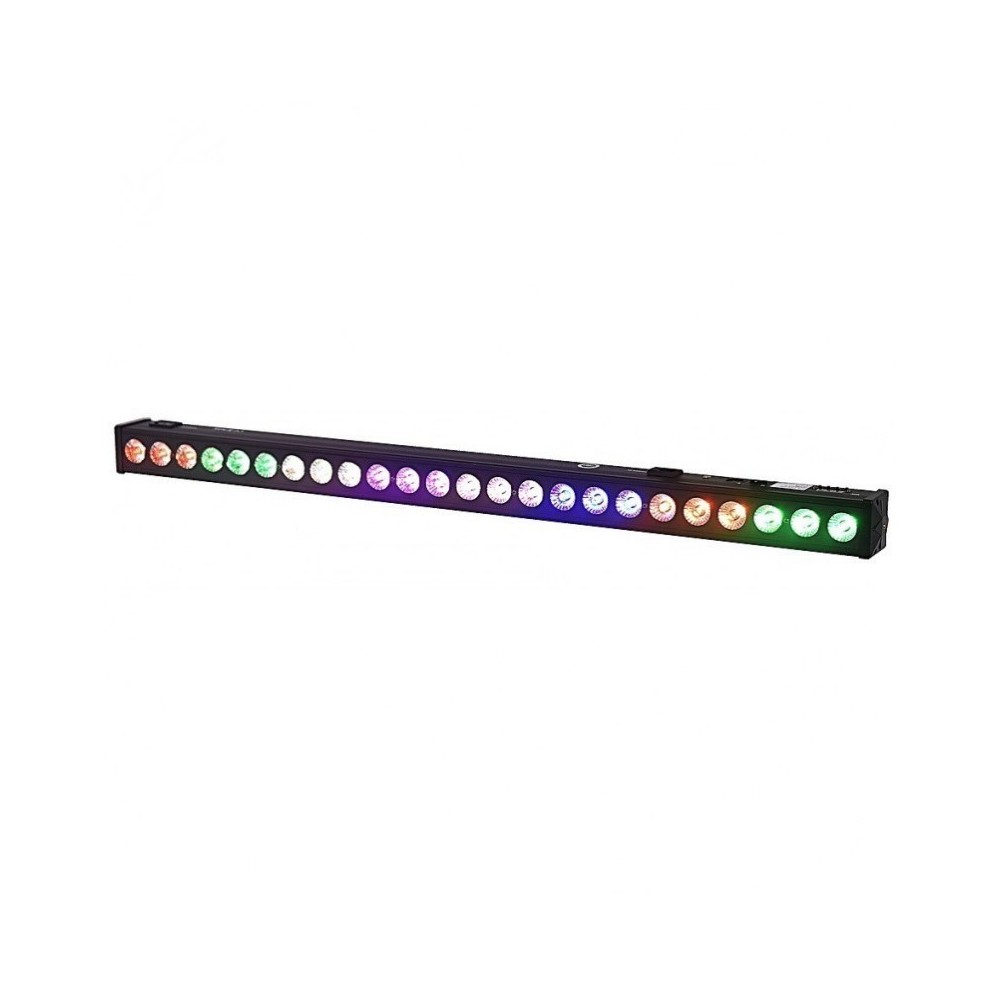 Nowoczesna belka oświetleniowa LED BAR wyposażona w 24 diody o mocy 3W każda. Oferuje tym samym optymalną jasność świecenia i wyjątkowo mocne nasycenie kolorów i może być z powodzeniem stosowana w zaawansowanych instalacjach oraz w mniejszych klubach i eventach. Urządzenie posiada gotowe programy pracy, co znacznie skraca konfigurację w dowolnym typie instalacji. Ponadto w jest w pełni kompatybilne ze sterownikami DMX.